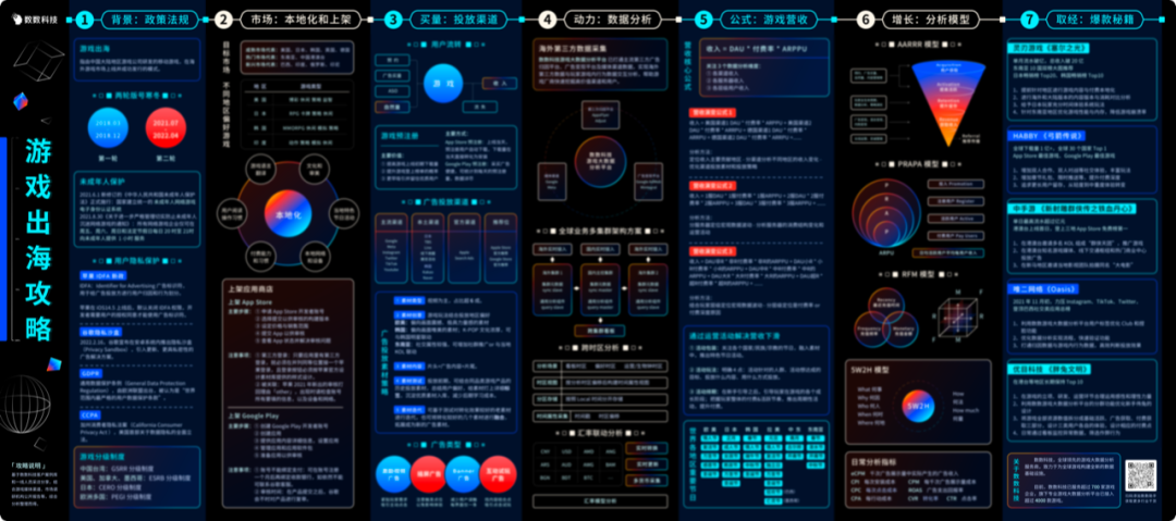 我们基于数数客户案例库和出海一线人员采访分享,结合权威游戏媒体渠道、市场调研机构公开报告,精心整理总结,通过可视化的方式,把游戏出海的重要知识点变成了这份攻略。