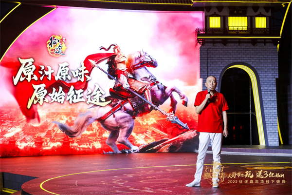 2022征途全系嘉年华线下盛典开启了征途与巨人集团黄金酱酒战略合作发布会环节,巨人集团黄金酱酒的品牌首席情绪官腾格尔作为特邀嘉宾来到现场,为征途玩家送出激情战歌《举杯朋友》,唱出了征途国战时的豪情,唱响了兄弟并肩作战时的友情,让在场的玩家们心潮澎湃,激动万分!