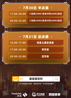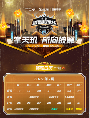 天玑×雷霆破军杯S4是由MediaTek天玑与虎牙直播平台共同发起,比赛时间为7月19日至7月31日。