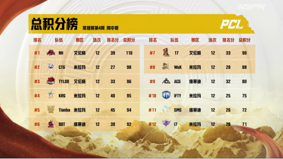 周中赛:NH战队霸气不减,头名晋级周决赛