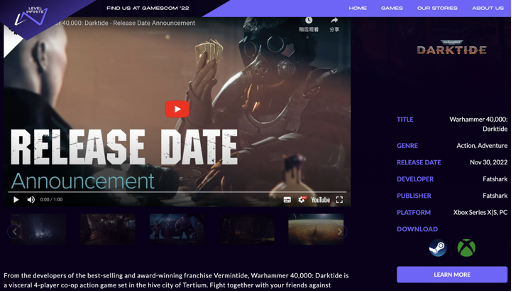 其中,摘得“最佳动作游戏”与“最期待 PC 游戏”双重大奖的《重金属:地狱歌手》,由Funcom与旗下Outsider工作室打造; 获得最佳多人游戏的《战锤 40K:暗潮》,由Fatshark工作室研发。这两款获奖游戏均为腾讯国际游戏业务品牌Level Infinite此次参展所推出的主力游戏。在Level Infinite官网上可以看到,以上两款获奖游戏由工作室自主独立发行。