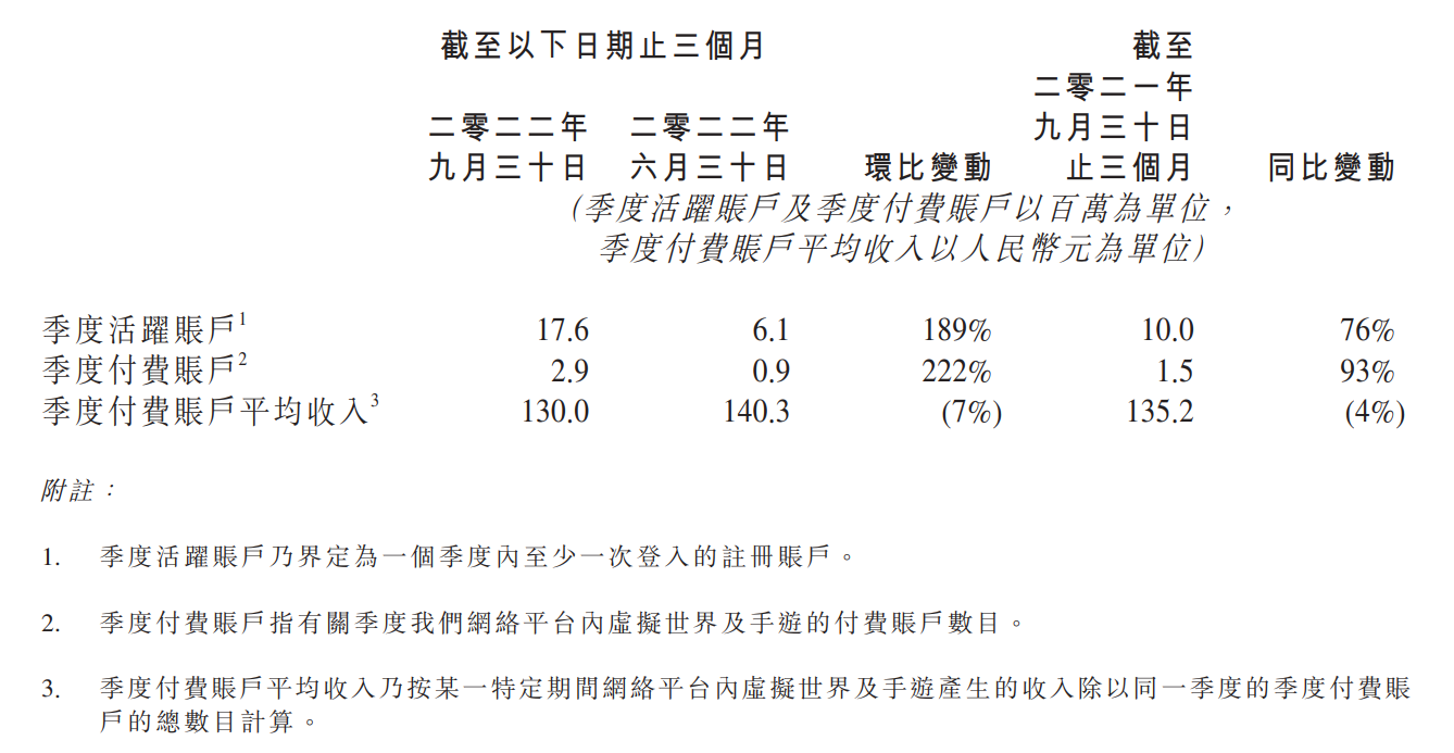 第三季度付费账户平均收入为130.0元,较上季度的140.3元环比下跌7%,较去年同期的135.2元同比下跌4%。