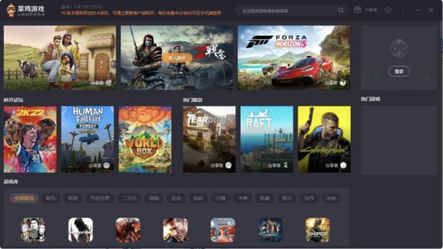 菜鸡也是市面上知名度较高、行业内口碑较好的云游戏品牌,他们功能较为丰富多,主要在移动端发力。