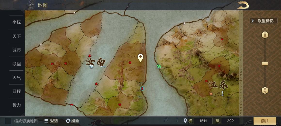 其中,就提到了“汝南”与“江东”,而它们也成为了游戏地图里相邻的两个区域。