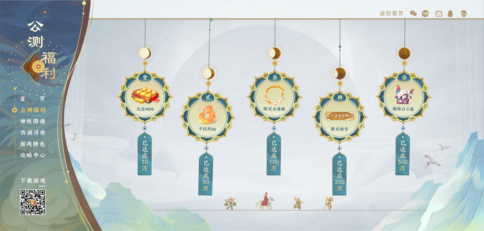 第一重福利——送限定称号、强力橙将!在公测首月进入游戏的守护使们可以无门槛获得五档豪华奖励,包含:元宝、千珏环、限定称号及头像框,更有强力又可爱的橙将白小鼠陪伴西行!