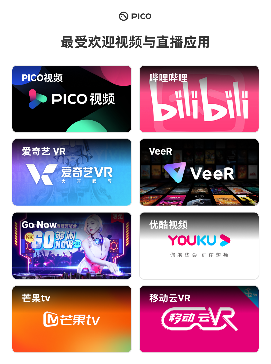 作为头部XR品牌,PICO始终致力于帮助VR开启大众化之路,而丰富且优质的内容和应用生态,是吸引大众消费者购买VR、使用VR的关键。近两年全球VR技术日渐成熟,产品快速迭代,PICO作为国内最完善的VR内容平台,亦在持续完善内容生态,积极加速与第三方的合作脚步,并在自制内容方面大力投入,致力打造国内应用最丰富、最优质的VR内容平台。迄今为止PICO应用商店已拥有超过200款国内外优质的VR应用。
