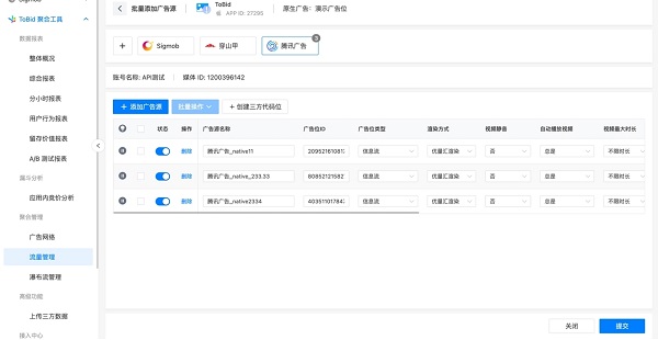 高效提升变现运营效率,一站式管理所有多家广告平台代码位