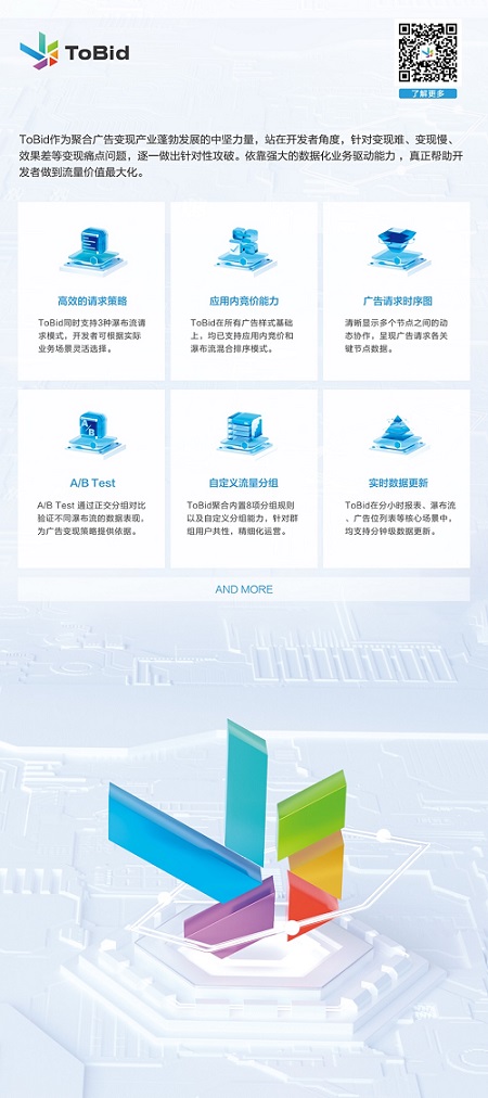 ToBid作为一款创新型的聚合工具,致力于帮助开发者精耕流量价值,最大化提升变现收益。凭借优秀产品硬实力,以及团队丰富的运营变现经验,得到了众多知名厂商的大力支持,先后与乐元素、迷你玩、创梦天地、盖娅互娱、Outfit7、西安点扣、广州九安、熊猫出行等众多知名厂商达成密切合作。欢迎广大开发者了解更多https://www.tobidad.com/contact