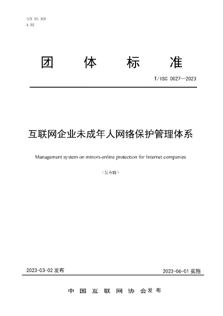 据悉,该团体标准将于6月1日起正式实施。其以国家法律法规、管理条例要求为基础,就未成年人网络保护建立接受度高、可行性强的行业自律准则,旨在帮助互联网企业构建未成年人网络保护管理体系。