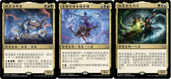 邪军压境入侵的绝大多数时空都是鹏洛客们曾经游历之所,因此,大量熟悉的面孔会在本系列悉数登场,有的选择和非瑞人同流合污,有的则会誓死反抗。《邪军压境》的每包系列补充包和轮抽补充包内,都有一张属于它们的卡牌——我们称之为“多重宇宙传奇”,这些传奇生物的卡牌都被绘上了饱含所在时空特色的精美牌框。