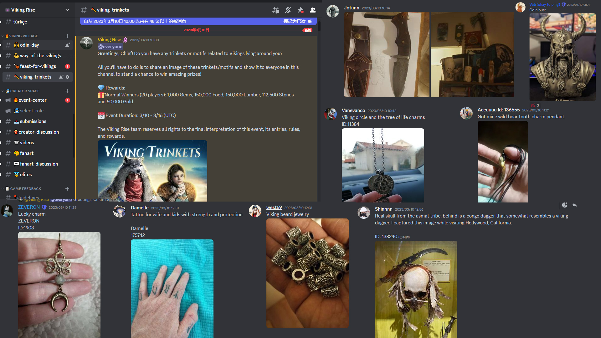 为了能够搭建社群,《Viking Rise》专门在Discord设立了“奥丁日”,每周三活动开启的同时,提供福利拉高活跃度是其次,更多还是为玩家介绍维京历史。而在官方带动下,社群内也开辟了单独板块用于讨论维京文化,由此形成了良性的内容循环。