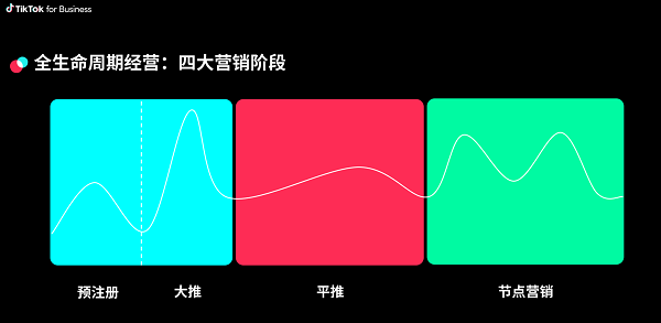 过往游戏行业所熟悉的全周期更多的是指游戏的研发、发行及运营阶段,殊不知在行业日益精细化运营的今天,单单是发行阶段也存在全周期的概念,即预注册、大推、平推及节点营销。目前,仅仅在大推和节点营销阶段做大规模投入已经很难满足出海游戏企业对于营销的需求,优化师也经常苦于针对现有的成熟模式无从下手。TikTok for Business 为帮助出海游戏企业探寻市场增量空间,将游戏发行的完整链路进行不断拆解,从而针对不同环节提供相应的营销解法,有的放矢地释放产品潜力。
