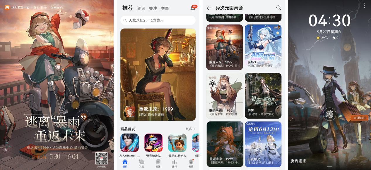 以最近首发的《重返未来:1999》为例,华为游戏中心在客户端内二次元专区输出游戏专题内容引起核心二次元用户关注,通过超级大卡和闪屏等资源位触达游戏用户,通过华为音乐、负一屏和杂志锁屏等全媒体智慧入口以及线下华为门店,实现泛游戏用户和更多消费者群体的破圈传播。通过在不同场景、面向不同用户群体定制对应的预约内容和素材,《重返未来:1999》在华为游戏中心预约冲刺期实现预约转化率提升43%。