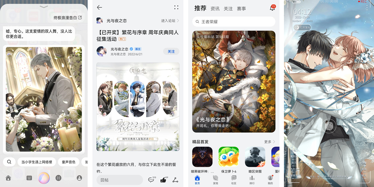二次元游戏还有一个显著的特点是与玩家有强情感联结。对此,华为游戏中心在该品类游戏的长线运营上也着力打造仪式感和专属感,强化用户与平台、与游戏的情感羁绊,促进用户留存的提升。这一点在女性向游戏上体现得更为突出,以《光与夜之恋》为例,在其2022年周年庆期间,华为游戏中心基于游戏内容特性和华为用户玩家偏好,特别策划了华为用户专属活动:华为用户可以说出特定口令,唤起植入了游戏语音包的小艺智慧语音,给用户一种直接对话游戏男主的体验,活动上线不到10天实现新增预约133万次,游戏用户在微博和小红书等平台自传播互动过百万;《策划不设防》内容栏目上线CV访谈,让用户更深入了解游戏角色背后的声音和故事;社区还举办了2022年周年庆同人赛,给用户一个机会创作心中浪漫的序章故事;还有华为主题上线《光与夜之恋》2022年周年庆主题和华为音乐上线夏鸣星生日专属角色歌《不会有时差》等活动,多场景触达用户。《光与夜之恋》在华为渠道的大盘占比自首发以来逐年提升,华为渠道年流水同比提升接近500%,回流用户量同比提升超350%,新增同比提升45%。