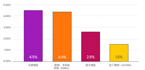 虽然北美地区的获取成本相对较高,但这个市场的7日广告支出回报率最高,达到4.5%;而拉美地区的7日广告支出回报率最低,仅为1.5%。