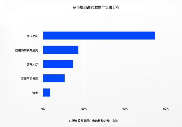 在分析了广告位和广告奖励等多个因素后,Unity 专家总结出了用户参与度最高的激励视频广告位,分别是:游戏关卡之间、内购商店内和游戏大厅或关卡开始前。
