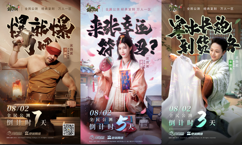 从7月28日到30日,贪玩官方开始了此次营销活动的铺垫工作,并进行了第一波宣发资源投放。在3天内,官方每天都会放出以游戏NPC为主题的倒计时海报,用游戏IP的代表性内容唤起玩家的情怀记忆,为新版本的到来进行预热。