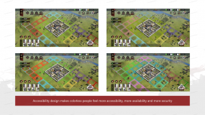 “色弱模式”无障碍一体化上线后,为色弱/色盲玩家提供了更多适合他们的色彩设置选择。玩家通过勾选不同的选项,就可以实时查看颜色的变更情况,选择自己识别性最高的方案。开启色彩模式后,相关算法会对页面上的对应资源进行色彩矫正,即便是后续迭代和新增内容,也能自动完成适配。通过这样的设计,真正地帮助特殊人群享有“平等地位”的游戏体验,提升对游戏的可接近性、安全感。