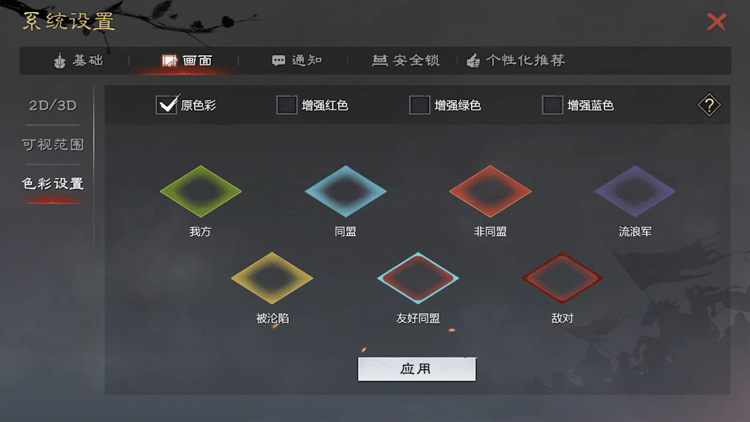 而另一项设计,色彩模式的诞生,其最初出发点是对色弱、色盲等弱势人群的特殊关怀。这部分人群因为颜色视觉上的缺陷,在游戏中往往会存在色彩辨别问题,影响正常的游戏体验。秉承“极客精神”,设计团队希望能够关注到一小部分用户的需求,并通过针对性的设计方案照顾到他们的切身感受。