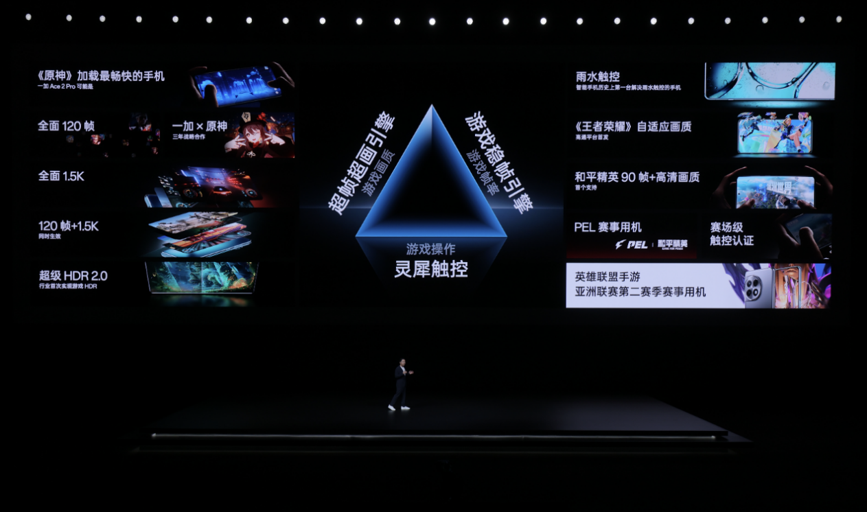 在本届亚运会上,电竞项目将首次作为正式竞赛项目亮相,而重负载的游戏场景是最考验手机极限性能的终极赛场。在顶级硬件和顶级散热的基础上,一加针对游戏场景自研多项游戏调校技术,在帧率、画质、触控这三个游戏最核心的体验上不断突破,为用户带来极致体验。借助 HyperBoost 游戏稳帧引擎稳住帧率体验的同时,一加针对帧率和画质体验自研超帧超画引擎,并不断迭代升级,在一加 Ace 2 Pro 上实现游戏超帧与游戏超分辨率 的同时开启,同时大幅拓展适配游戏范围。一加还独家自研全链路触控技术「灵犀触控」,通过「触控-显示」的全链路优化降低触控时延,并在一加 Ace 2 Pro 上进一步升级,彻底消除游戏汗手、屏幕沾水等场景的触控痛点。此外,一加还关注到了游戏过程中的触控体验,与瑞声科技展开深度合作,在一加 11 上首发安卓阵营体积最大的「仿生振感马达」。凭借超 600mm³ 超大体积与振动算法的深度调校,一加手机实现了多重振感叠加的高品质振感体验,并将其适配到更多主流游戏场景当中。