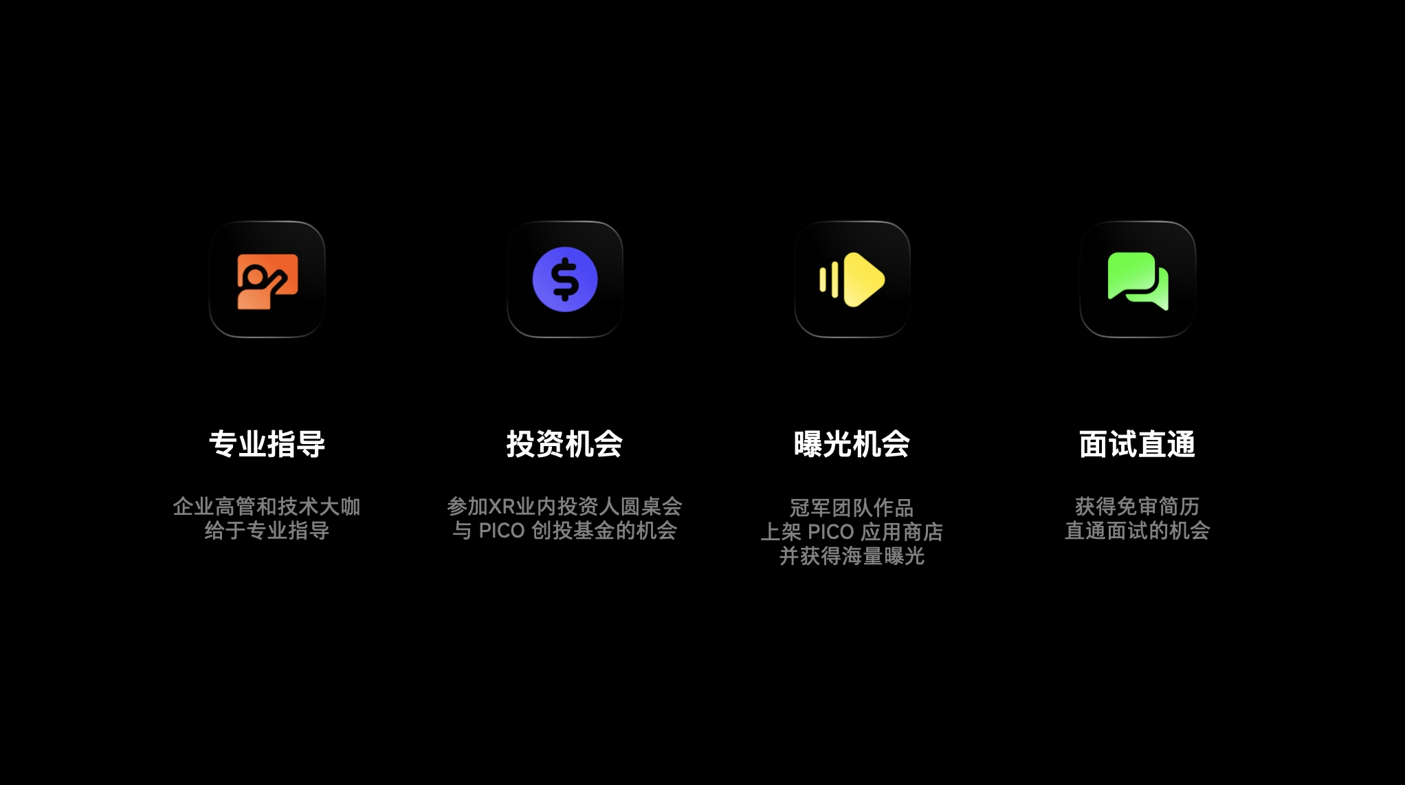 PICO将为开发者们提供专业指导、投资机会、流量曝光等全方位支持