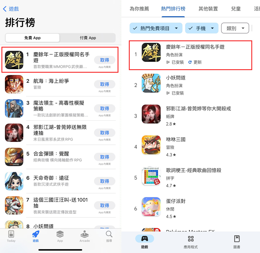 《庆余年》手游上线首日即获港澳台地区iOS及Google商店免费榜第一