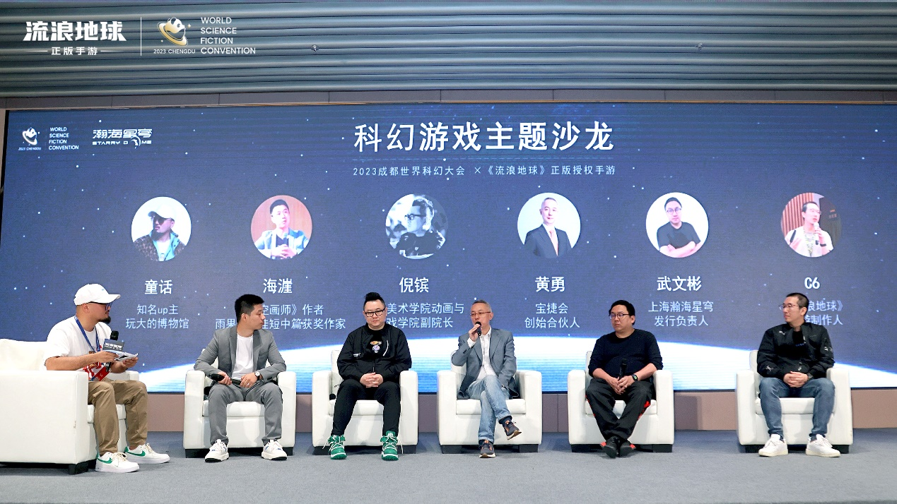 除了刚刚斩获雨果奖的海漄,《流浪地球》手游主题沙龙,还邀请到了《流浪地球》手游发行负责人&资深游戏⾏业专家武⽂彬、《流浪地球》⼿游制作⼈C6、中国美术学院教授&动画与游戏学院副院⻓倪镔以及宝捷会创新基⾦创始合伙⼈&知名投资领域专家⻩勇来到现场。诸位大咖在和特邀主持人、B站知名UP主馆长交流中,充分结合各自领域的宝贵经验,分享了自身对科幻游戏产业的想法和期许。