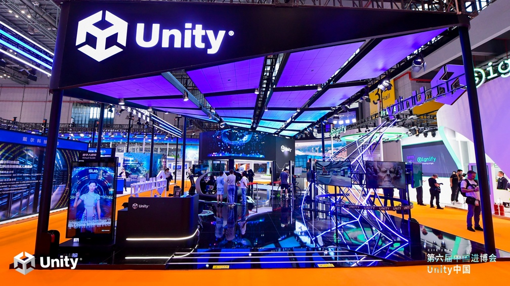 2023 年 11 月 5 日,上海——今天,第六届中国国际进口博览会在上海隆重开幕,Unity 中国作为全球领先的实时 3D 引擎 Unity 在华设立的合资公司再次参展,以“万有引力”为主题在技术装备展区的 3A4-03 展位正式亮相。