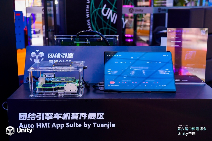 在这场国家级盛会中,Unity 中国以“数字世界构建者”的姿态登场,不仅在进博会现场首发了其自主研发的团结引擎车机套件,还在展台上汇聚了AIGC、智能座舱、元宇宙、数字孪生等前沿技术创新成果,展示了实时 3D 技术在新时代不可或缺的价值。