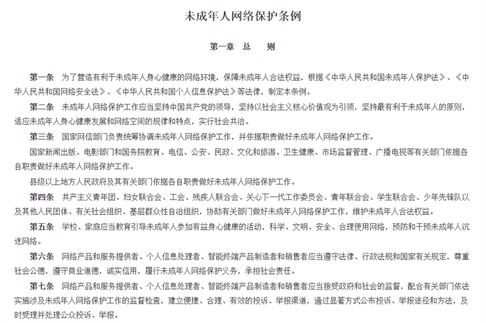 为此,我国出台了首部专门性的未成年人网络保护综合立法《未成年人网络保护条例》,并将于2024年1月1日起正式施行。
