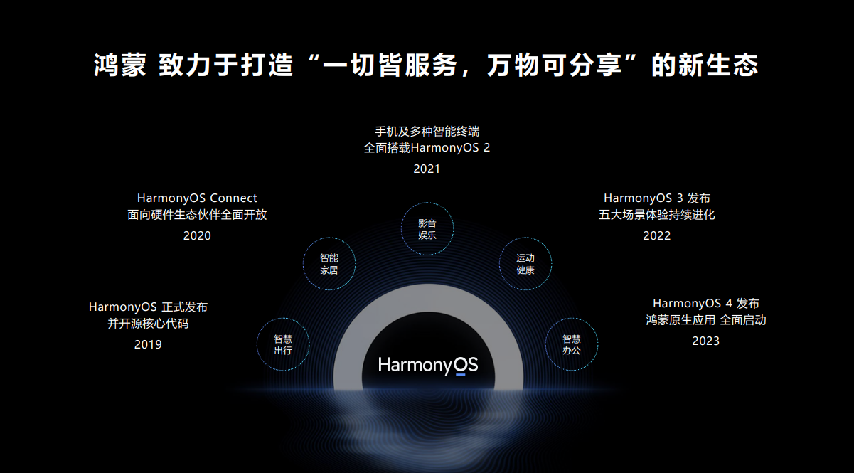 作为面向万物互联全场景时代的智能终端操作系统,从2019年正式发布以来,HarmonyOS围绕“智慧出行”“智能家居”“影音娱乐”“运动健康”“智慧办公”的五大场景持续不断地升级用户体验。今年,华为发布了有个性、超好玩、新体验的HarmonyOS 4,同时,HarmonyOS NEXT蓄势待发,鸿蒙原生应用全面启动,华为与游戏、社交通讯、出行导航、商务办公、旅游住宿等在内的18个领域的开发者及伙伴展开鸿蒙原生应用的全面合作。鸿蒙正致力于打造“一切皆服务,万物可分享”的自主创新的移动应用生态。