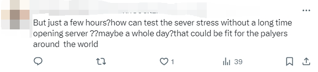 评论大意:“抱怨”此次游戏内测时间太短,没玩够