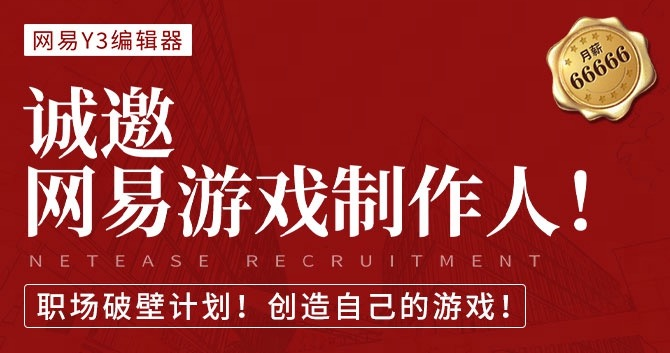 热爱不简单,实现热爱却很简单。网易游戏百万年薪招募“最6游戏制作人”,这岗位真的没那么高不可攀,毕竟有了Y3编辑器,做游戏很简单,难得的是你有宝贵的创意和行动的勇气。接下招募令,加入网易游戏,与最顶尖的伙伴们一起创造心中的游戏,不负热爱之名。