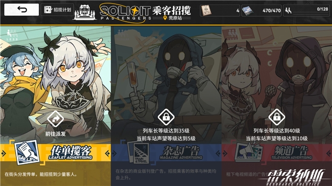 如果需要达到的城市距离较远且客厢位数量充盈,且列车长等级达到一定要求,可以通过传单和杂志广告招揽乘客,需要注意的是传单揽客不限次数,杂志广告每日一次。一系列流程走完,可以帮助大家尽快刷完体力,解决了大家心疼疲劳值过剩的问题,也挣到了一笔可观的铁盟币。