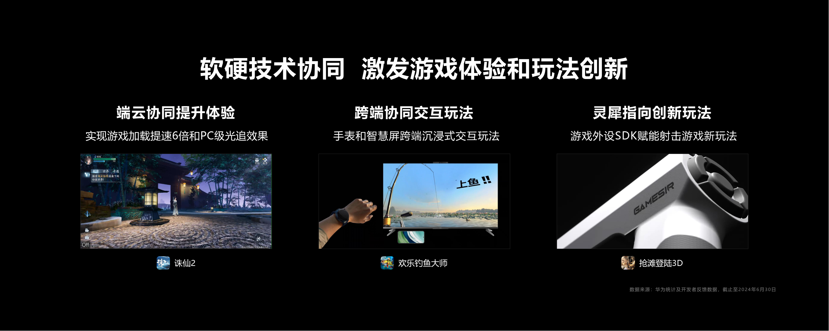 HarmonyOS NEXT致力于打造原生精致、原生易用、原生流畅、原生安全、原生智能和原生互联的极致体验。基于创新架构、分布式技术和系统级AI能力等,原生鸿蒙通过软硬协同的技术创新,激发游戏体验和玩法的更多创新。一方面,通过操作系统和游戏深度优化,全新的云编译和云渲染等端云协同能力极大地提升游戏流畅度,比如《诛仙2》把PC级光追效果带到移动端,带来更真实的游戏画面和更流畅的操作体验。另一方面,基于分布式及时和全场景特性,多设备连接创新更多游戏交互方式,《欢乐钓鱼大师》通过手表和智慧屏的跨端协同交互,让用户玩家在客厅里就可以挥杆“钓鱼”。