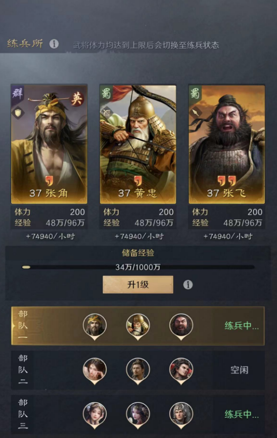 就比如游戏中对于练兵的优化,玩家在前期打地获得的经验有了提升,开荒期间就可迅速提升等级,战斗力飙升。如果玩家没时间打地,自动练兵功能可以让玩家在忙碌时挂机就能获得武将经验,而且多余的经验还可以储存,在需要的时候直接提升部队等级。在《三国:谋定天下》的武将培养就是这么的松弛,运用玩家的闲暇时间,就可光速提升武将等级,不用担心掉队,也不用担心被其他玩家毒打,玩家只要想着怎么打胜仗,剩下的烦恼都可交由《三国:谋定天下》解决。
