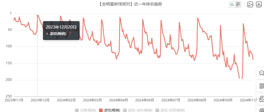 这款游戏融合了街头篮球文化与经典篮球IP,旨在为玩家模拟操作性强、趣味性足的街头篮球体验。游戏在去年国服上线后,成绩表现不俗,最高登上过iOS游戏畅销榜Top7,不过近一年的表现有点儿疲软。
