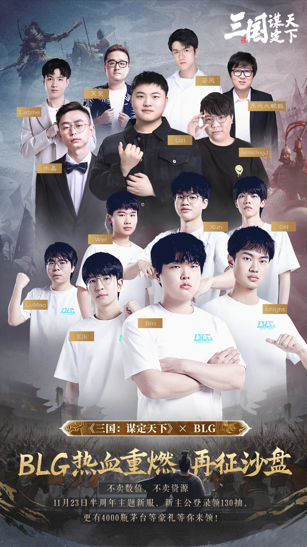 看到这些传奇选手加盟,《三国:谋定天下》的“主队”BLG坐不住了,他们全员出动,势要与这些传奇选手们一决胜负。而BLG作为今年世界赛亚军,如果uzi他们击败BLG,那uzi岂不就是硬实力冠军?小狗没有S赛冠军的遗憾,这次由我们在三谋替他弥补。