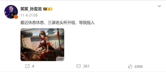 事情的开端要从DYS的直播间说起,有水友在直播间询问孙哥去向,随后被告知孙哥输比赛后玩三谋散心去了。而摊牌了的孙哥也在微博疯狂摇人,letme、水晶、aj接受孙哥邀请,欣然加入三谋大家庭。