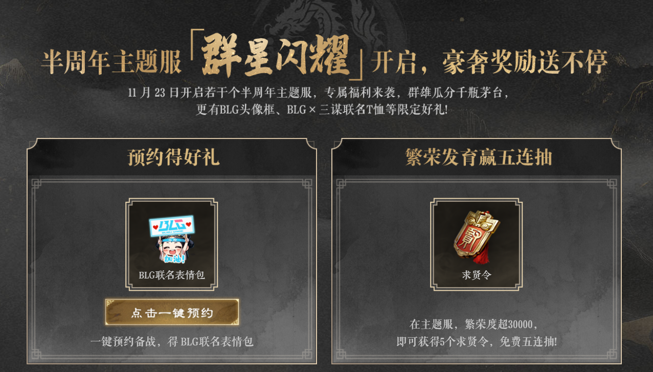 大型纪录片《三谋大乱斗》即将播出,感兴趣的小伙伴可以现在前往官网预约,11月23日在“半周年主题服”前线吃瓜,与喜欢的选手共争天下。