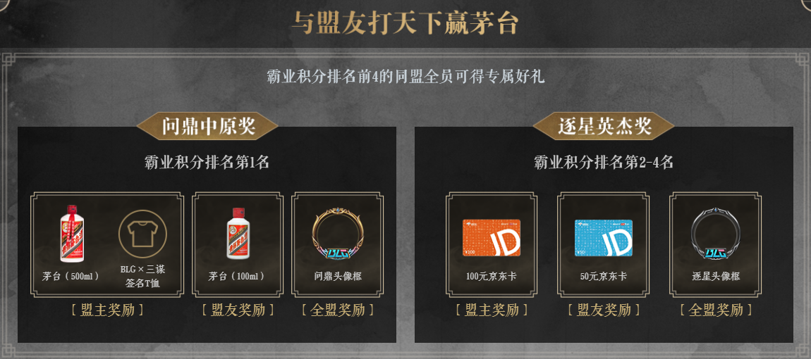 并且,现在加入主题服,只要霸业积分达到一定条件就能获得真金白银的京东卡奖励,如果你能成为问鼎中原的同盟,盟主和盟友都能获得飞天茅台作为奖励,小比赛一打,小茅子一喝,还有什么是比这样玩游戏更爽的嘛。