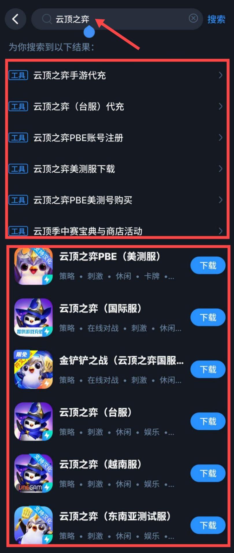 美测服手游加速教程:打开CC加速器APP版---搜索“云顶之弈”---选择【云顶之弈PBE(美测服)】---点击【下载】---安装成功后回到CC加速器点击【加速】