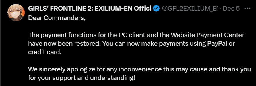 昨天美服上线后,《少前2》的运营小莫发文表示“交易系统总算修好了”,对应的应该就是美服PC端支付渠道被挤爆的那档事。虽然这锅得官方背,但一定程度上也反映了海外玩家对《少前2》的认可。