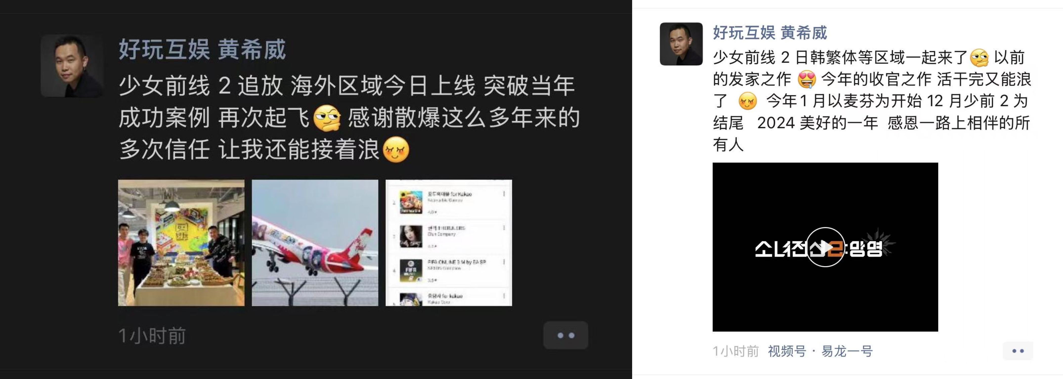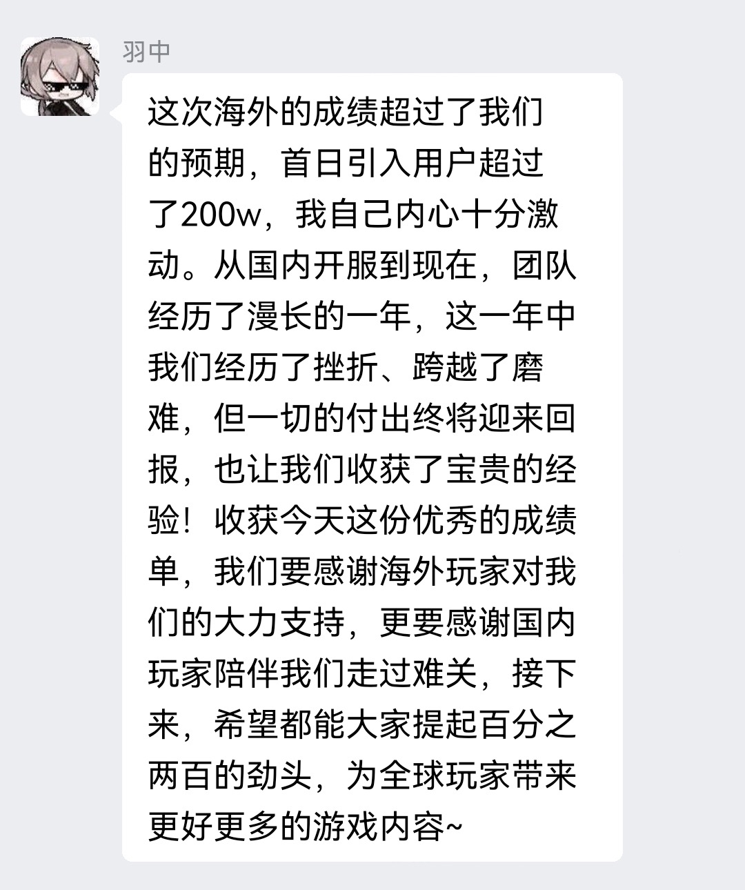 最终,在发行侧的全力支持以及运营侧的后勤运转下,《少前2》应声凯旋海外,黄希威高兴地连发几条朋友圈感谢散爆的信任,我们也看到了散爆在自主发行层面取得的进步。