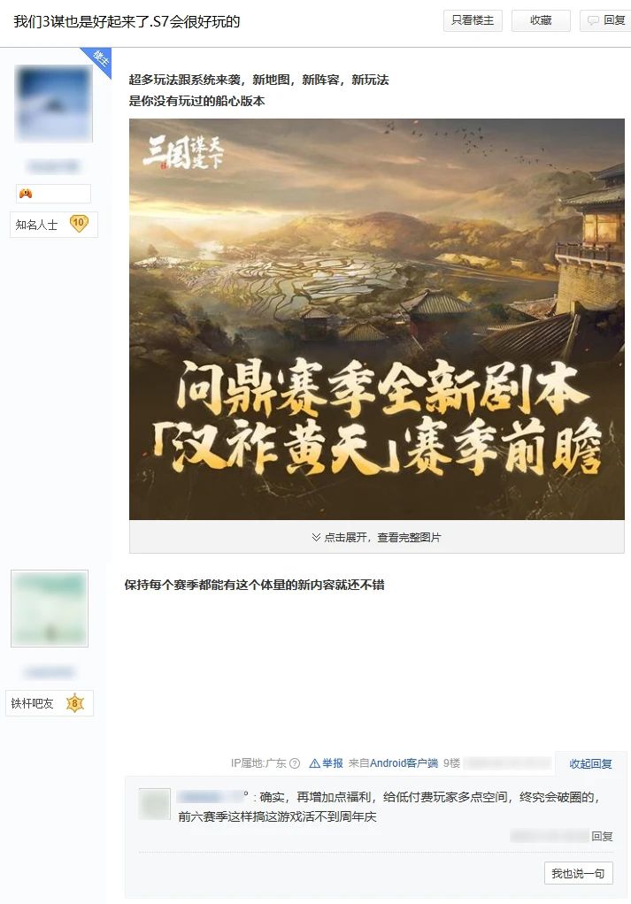 针对「汉祚黄天」剧本的新内容,有不少用户在贴吧给出了好评