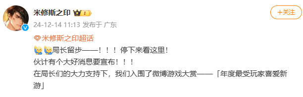 然而,随着游戏版本逐渐稳定,内容日益丰富,《米修斯之印》逐渐有了“逆袭”的趋势:大约两个月后,游戏的TapTap评分回暖,从5.9的低分来到了7.8分;同一时期,《米修斯之印》还入围了微博的“年度最受玩家喜爱新游”奖项。而在外部榜单之上,也重新出现了他们的身影。