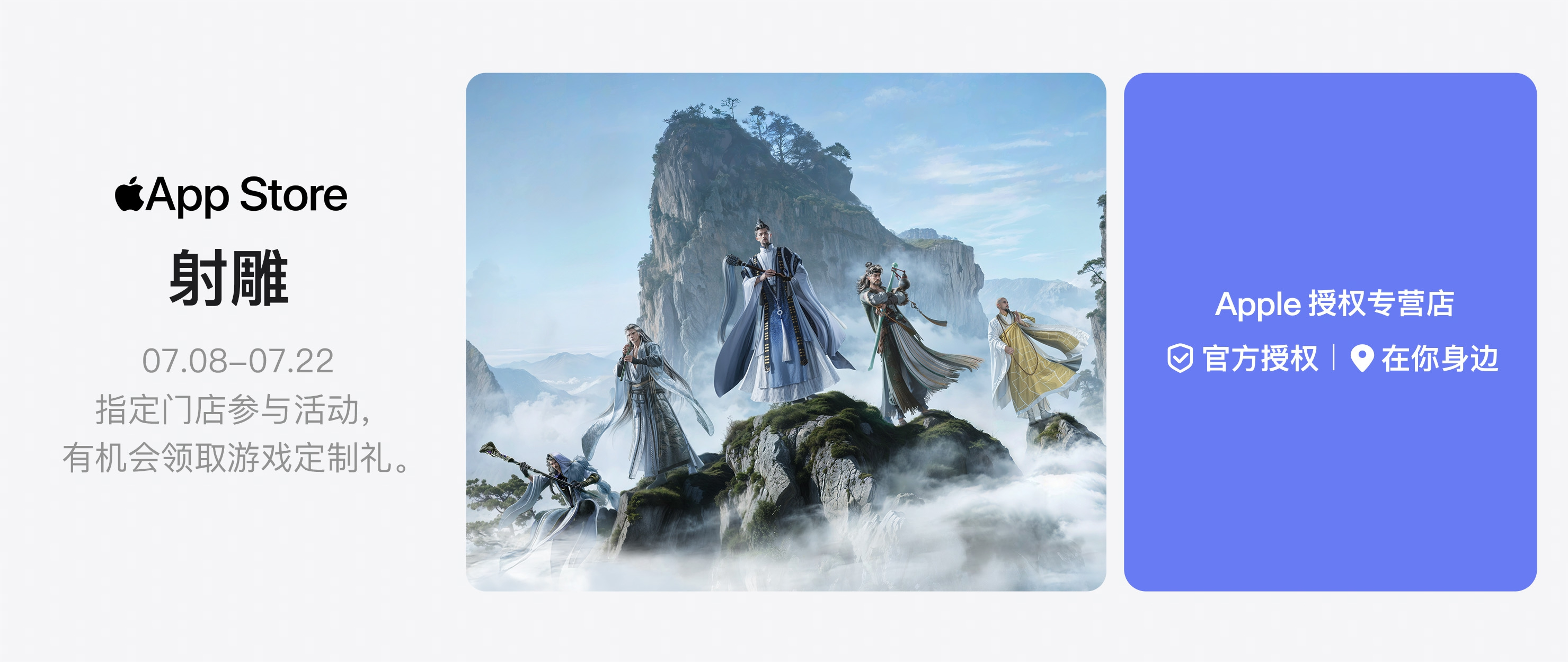 7月8日至7月22日,网易旗下的经典武侠IP游戏《射雕》与 Apple 授权专营店达成重磅合作,共同开启 “华山论剑” 线下主题活动,为玩家带来沉浸式自由武学真金庸的武侠体验,邀请广大玩家共赴华山之巅。此次联动共计覆盖全国600+座城市 Apple 授权专营店,以金庸武侠文化为核心,通过科技与经典武侠的碰撞,为玩家打造一场沉浸式的江湖盛宴。