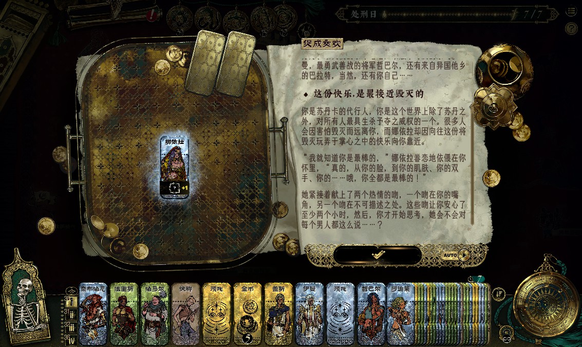 在“混邪”之余,《苏丹的游戏》本身的剧情内容也并不单调。在游戏中,扮演权臣“阿尔图”的玩家既可以坚持善行、帮助穷人、谋划革命,进而推翻苏丹的暴虐统治;也可以屈服于这一场权力游戏,顺从规则,甚至放纵自己的恶行,堕落其中……每一次选择,每一张苏丹卡的折断,背后都是人性的冲突与自我的映射。
