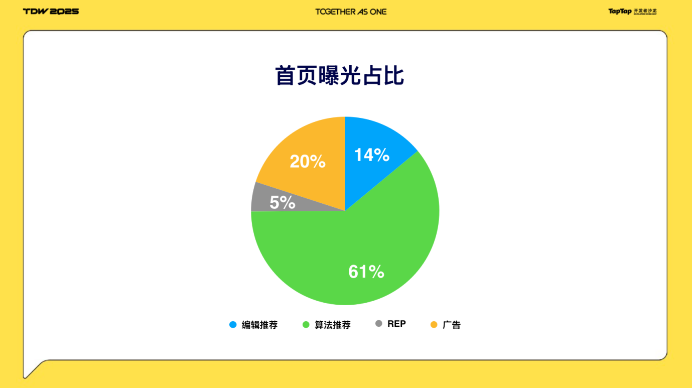 因此,我们正在持续地、重新地提升「编辑推荐」的占比。去年此时,编辑推荐在首页的曝光占比仅为 7%,但经过一年的逐步调整,目前这一比例已来到了 14%。从绝对数字来看,这对于需要支持的独立游戏或精品游戏而言,单日的推荐量已经非常可观。