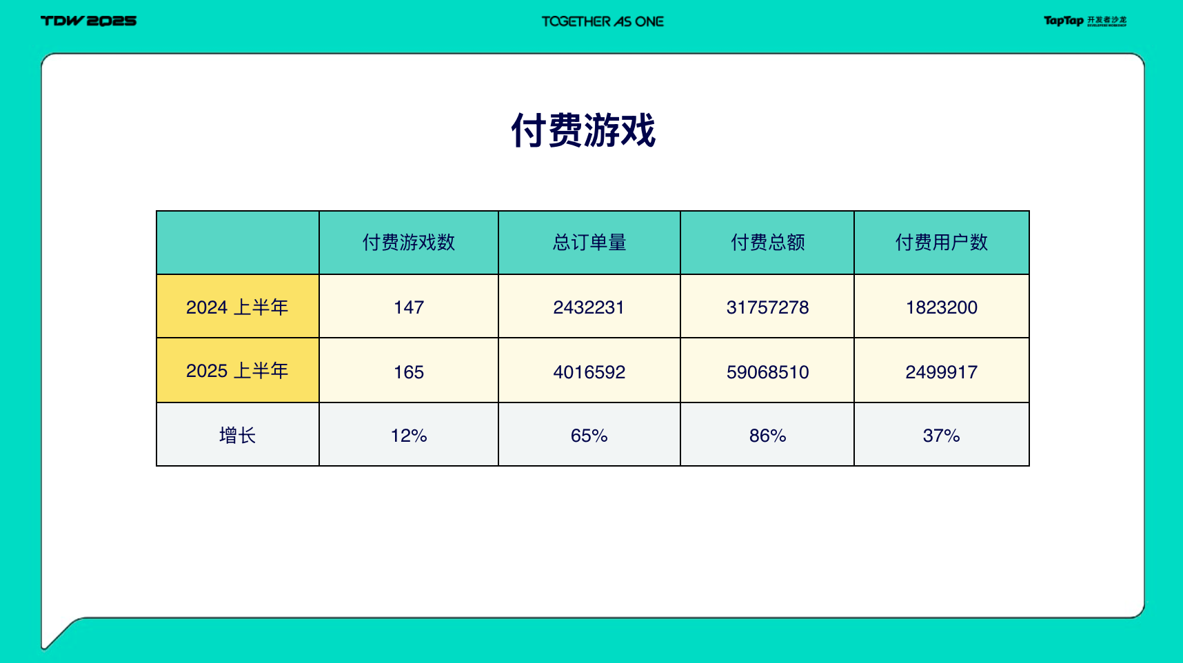 在过去半年中,TapTap 付费游戏的各项数据增幅远超平台整体。虽然绝对数字相较商业化游戏不大,但我们希望将其作为一个独立单元来着重说明。我们始终对一次性买断制游戏抱有自己的坚持和偏爱,并坚信它是整个游戏行业不可或缺的重要组成部分。